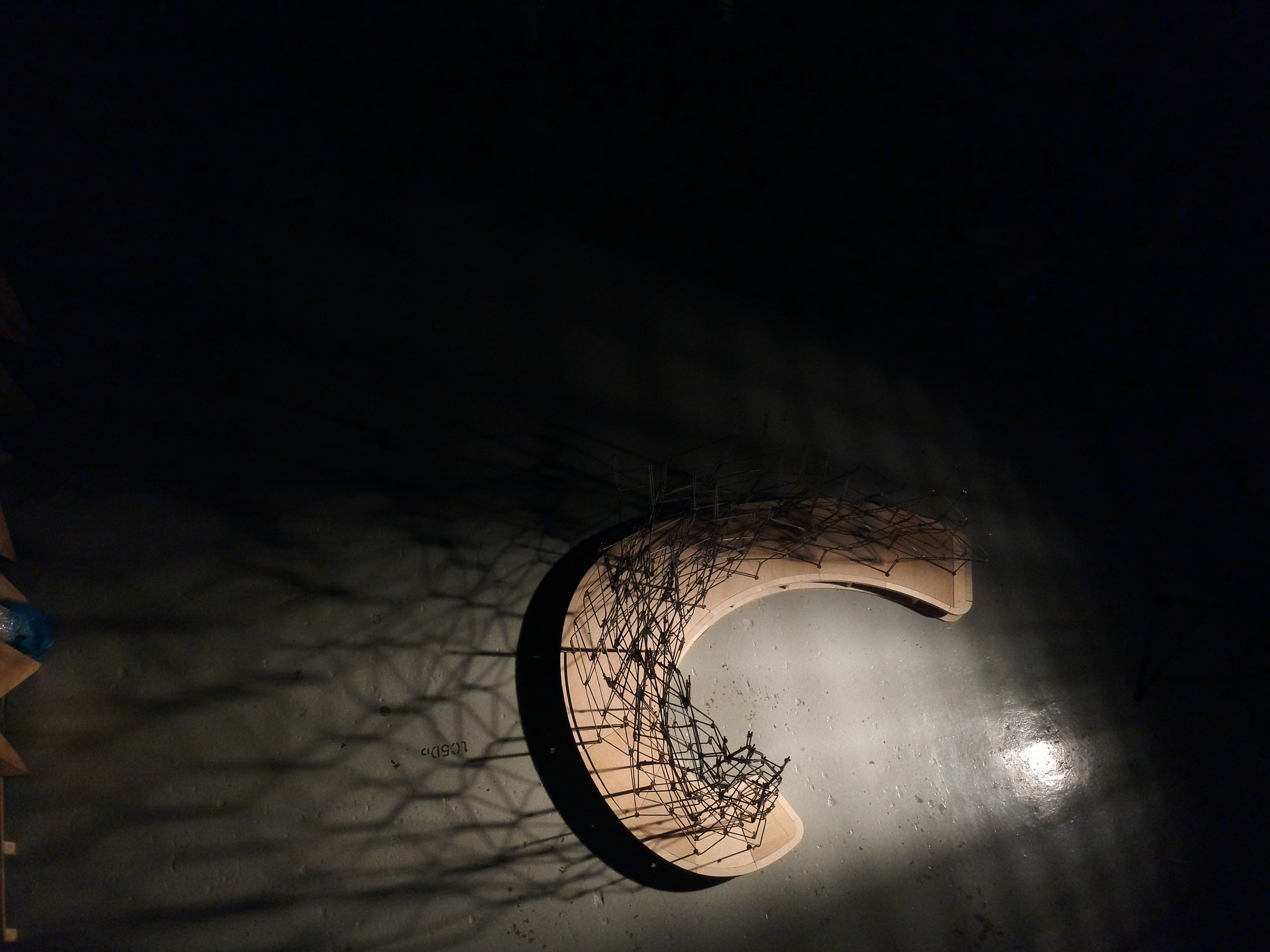 The 1:1 scale prototype is one of the edge arches supporting the beam of the overall structure. The design follows its structural needs, by splitting into two separate support points in each side, and shifting the middle arc curve away from the center, in order to distribute the loads efficiently.